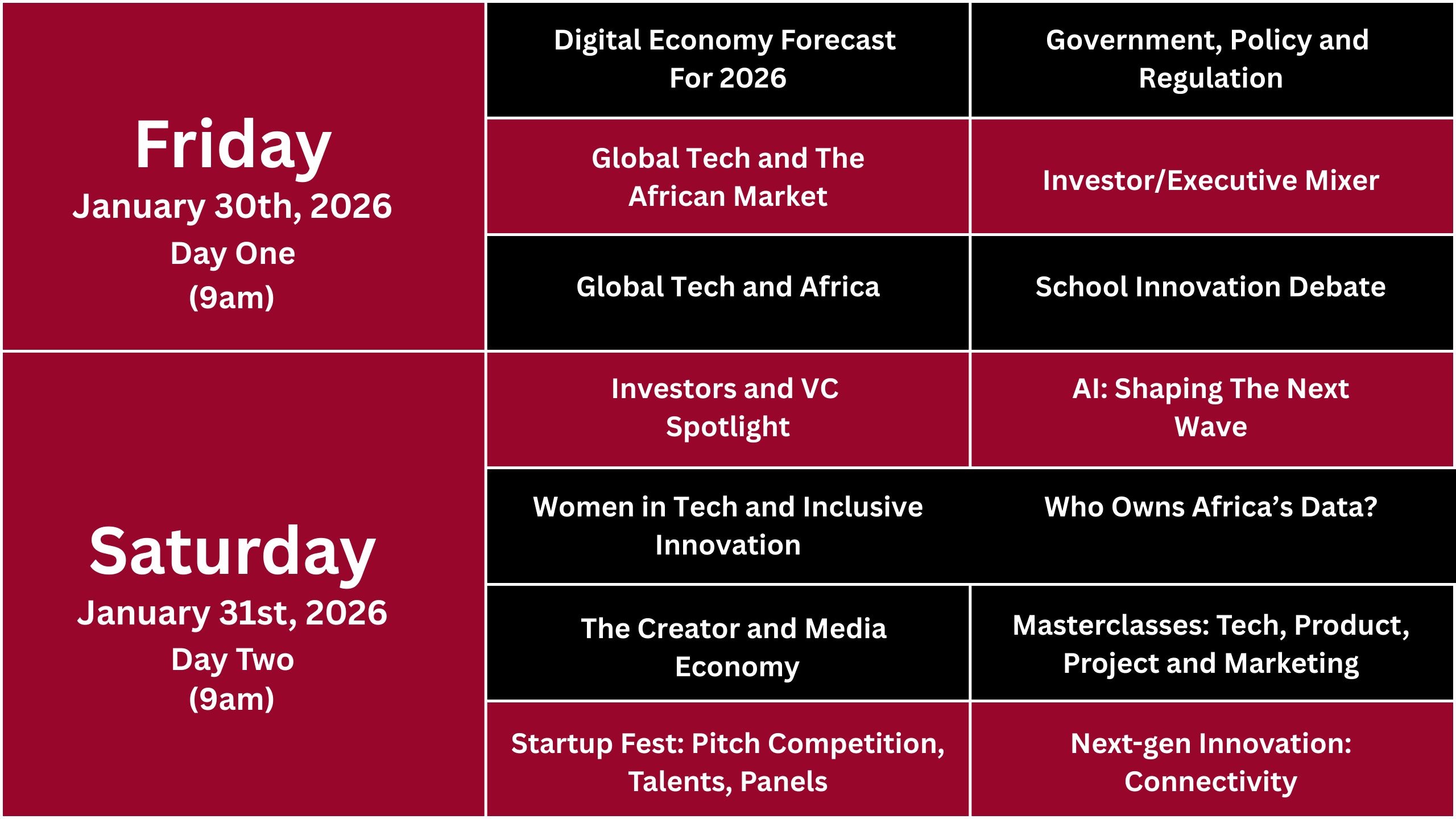 Tech Revolution Africa holds on the 30th and 31st of January, 2026.